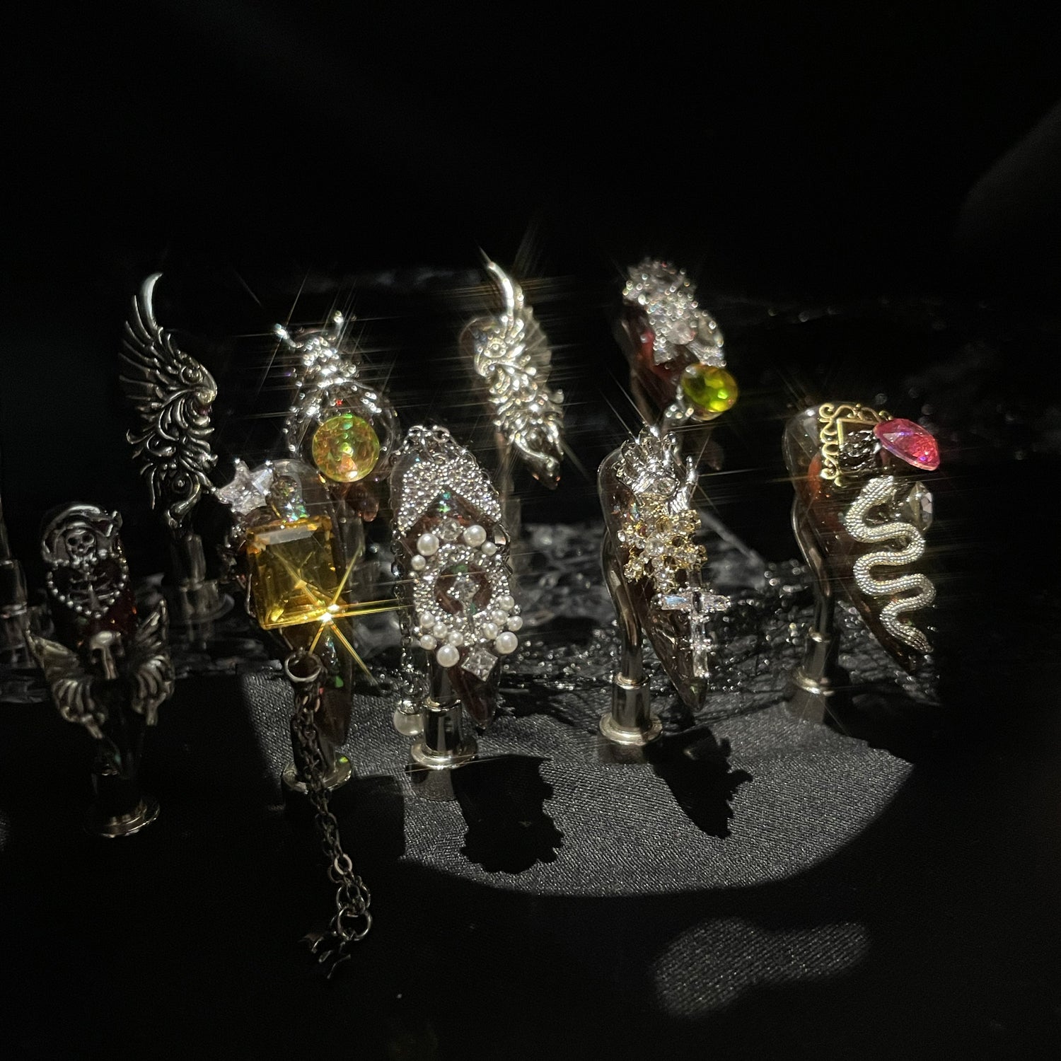 213 Luxury giant diamonds silver chain snake decoration handmade 3D Press On Nails