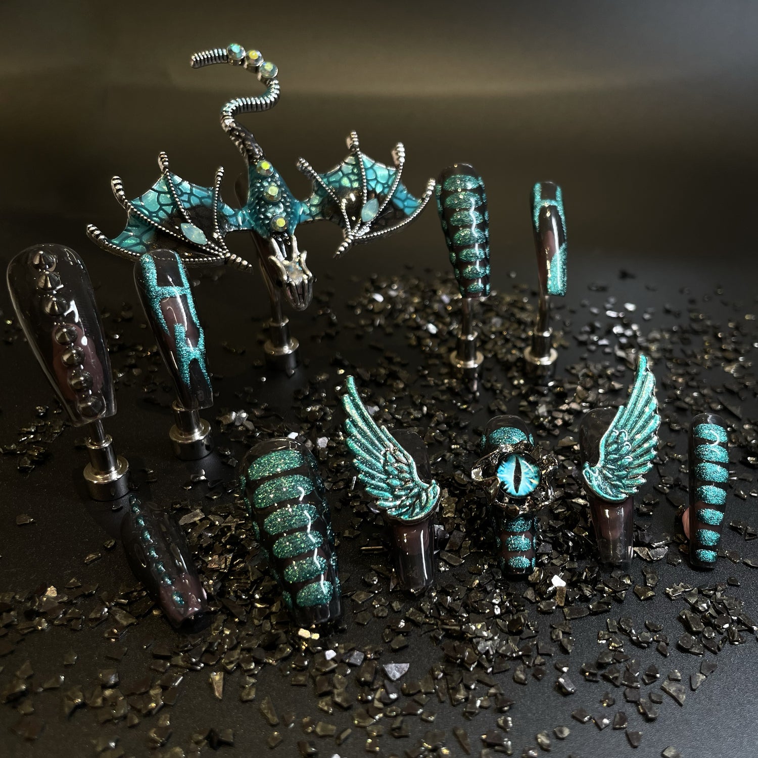243 Royal diamond wing dragon devil's eye handmade 3D Press On Nails