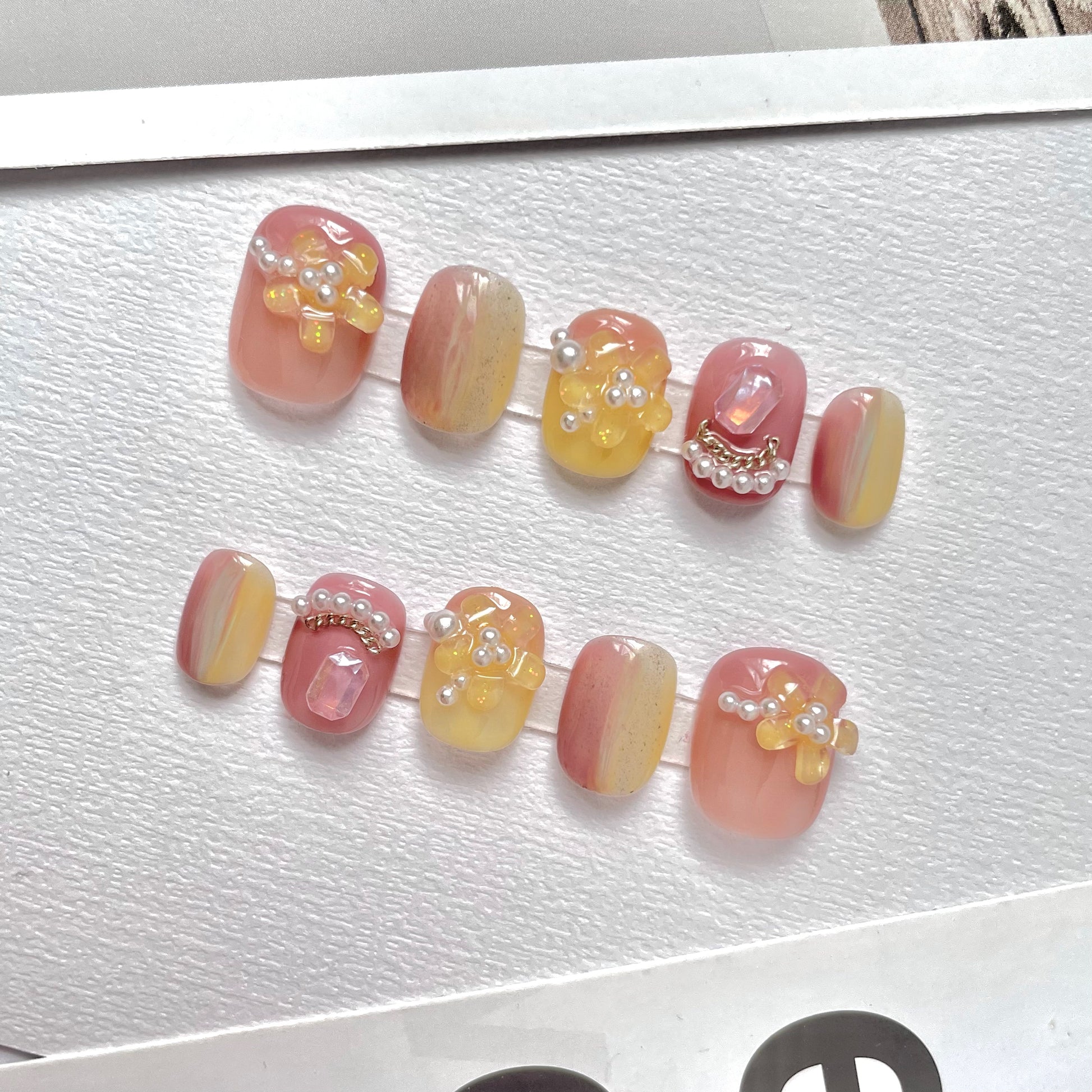 108 Pearl osmanthus flower gradation handmade 3D Press On Nails